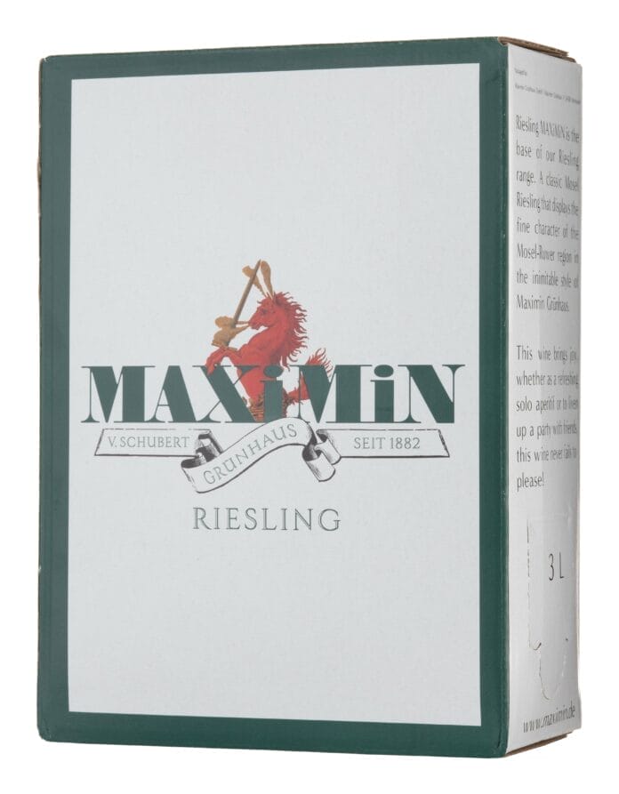 Maximin Riesling 2021. Tyskland, Mosel. Pris 501,10 Poeng 87/100 (BiB 3 liter)Importør: Vinum AS