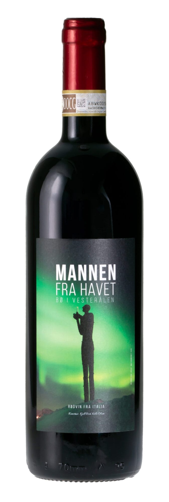 Etiketten på vinen viser Kjell Erik Killi Olsen fantastiske skulptur som står i skulpturlandskapet i Bø i Vesterålen. Stående på fjell og skuer ut over havet. Havet som er grunnlaget for hele Nord Norge.