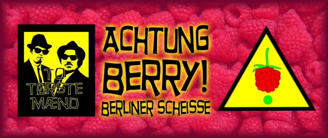 Avslutter med å ønske velkommen til lansering i dag på Cafe Sara med følgende beskrivelse av Achtung Berry! av To Tørste Mænd: En skikkelig bringebæroverdose! Tilsatt Lactobacillus i mesken i to dager før kok, og riklig med bringebær etter gjæring. Første gang vi brygget denne hjemme sleit vi med å la lactobacillusen formere nok seg til at ølen ble så sur som vi ville ha den. Vi synes derfor ikke det var riktig å kalle ølet en Berliner Weisse, så vi skapte heller en ny stil: Berliner Scheisse. Etter første batch har vi fått kontroll på syrninga, men beholder undertittelen Berliner Scheisse. For det hender folk smiler når de ser teksten og vi synes folk som smiler er ganske kult.