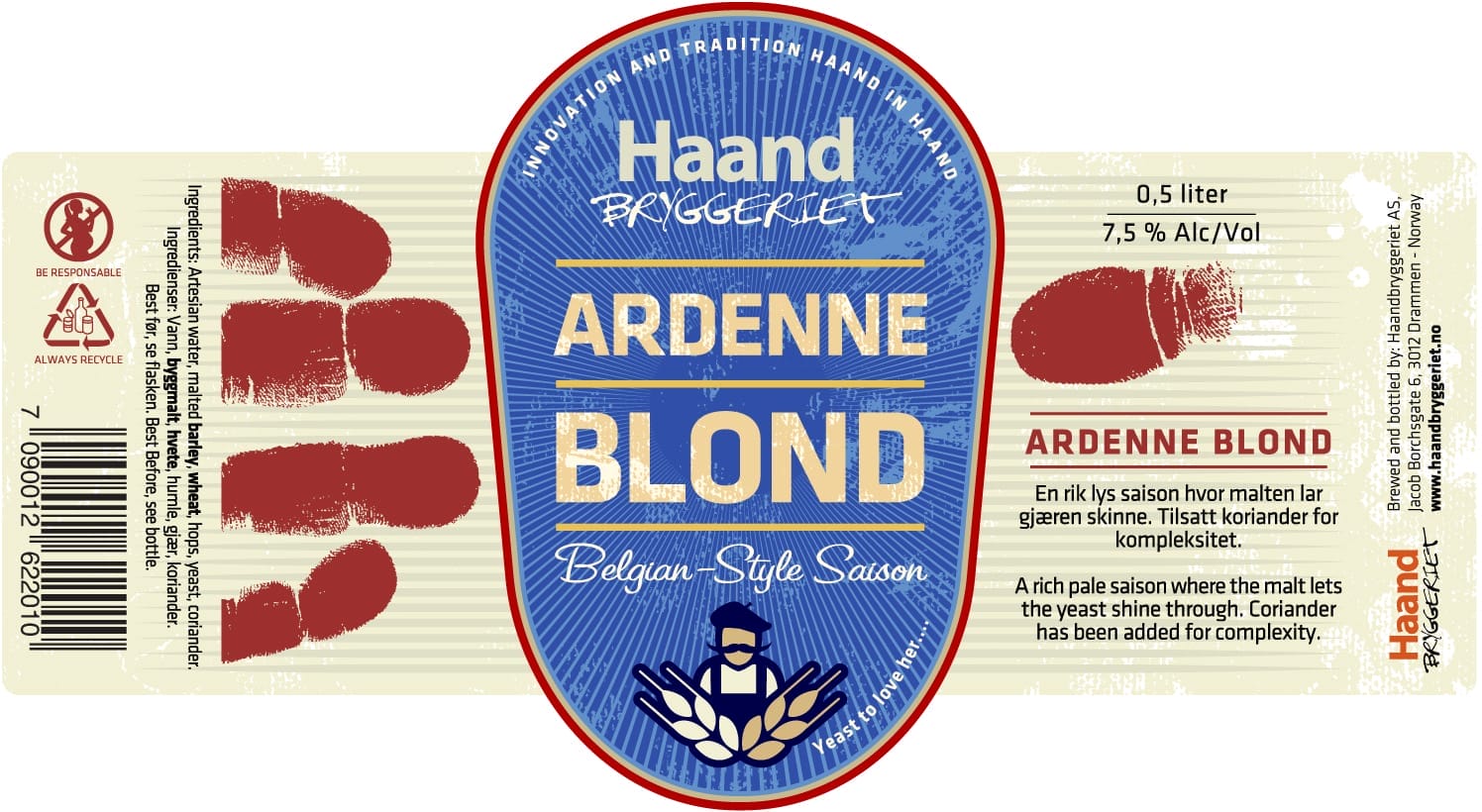 Haandbryggeriet Ardenne Blond. Norge, Drammen. Pris kr. 79,90 (50cl)